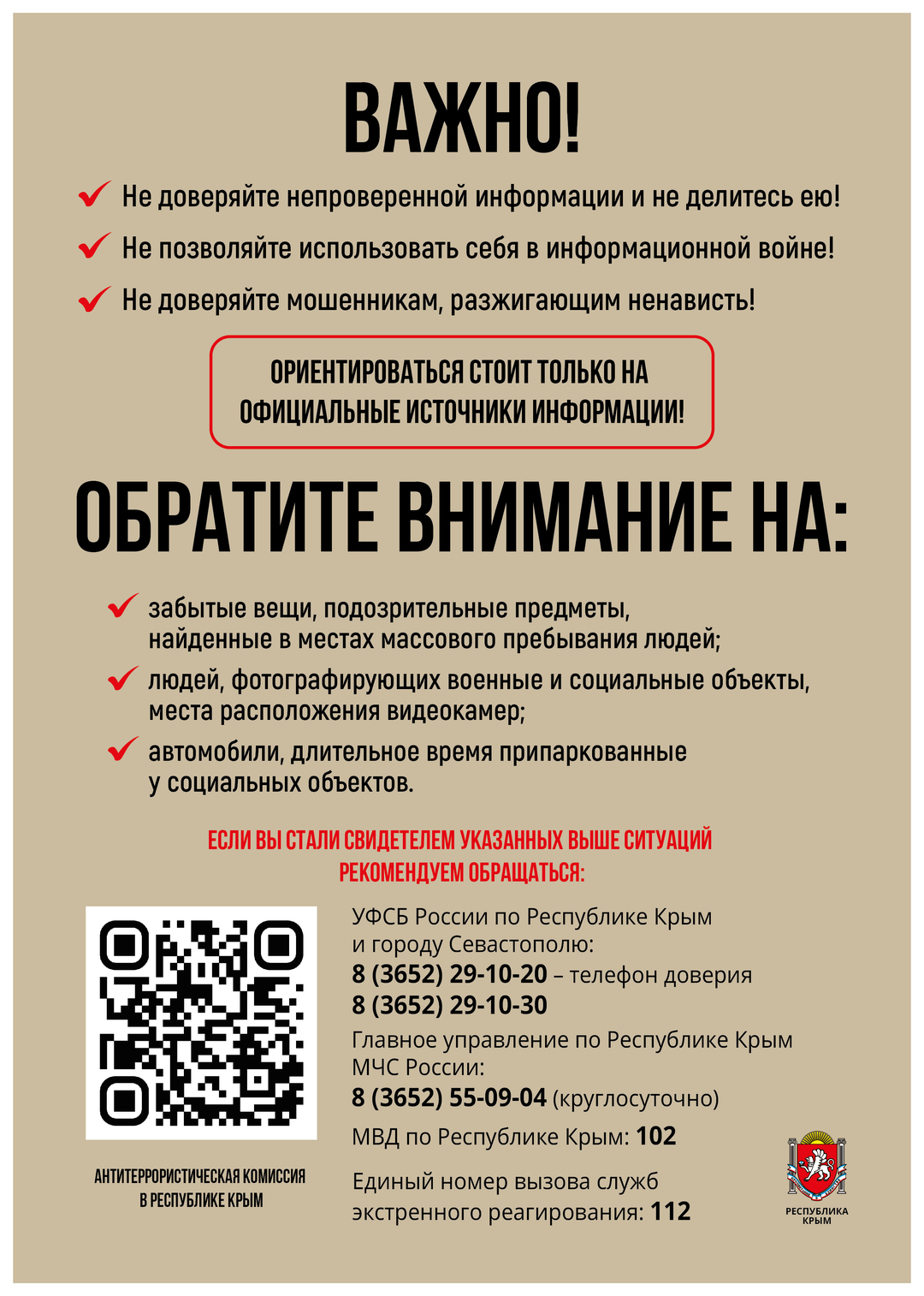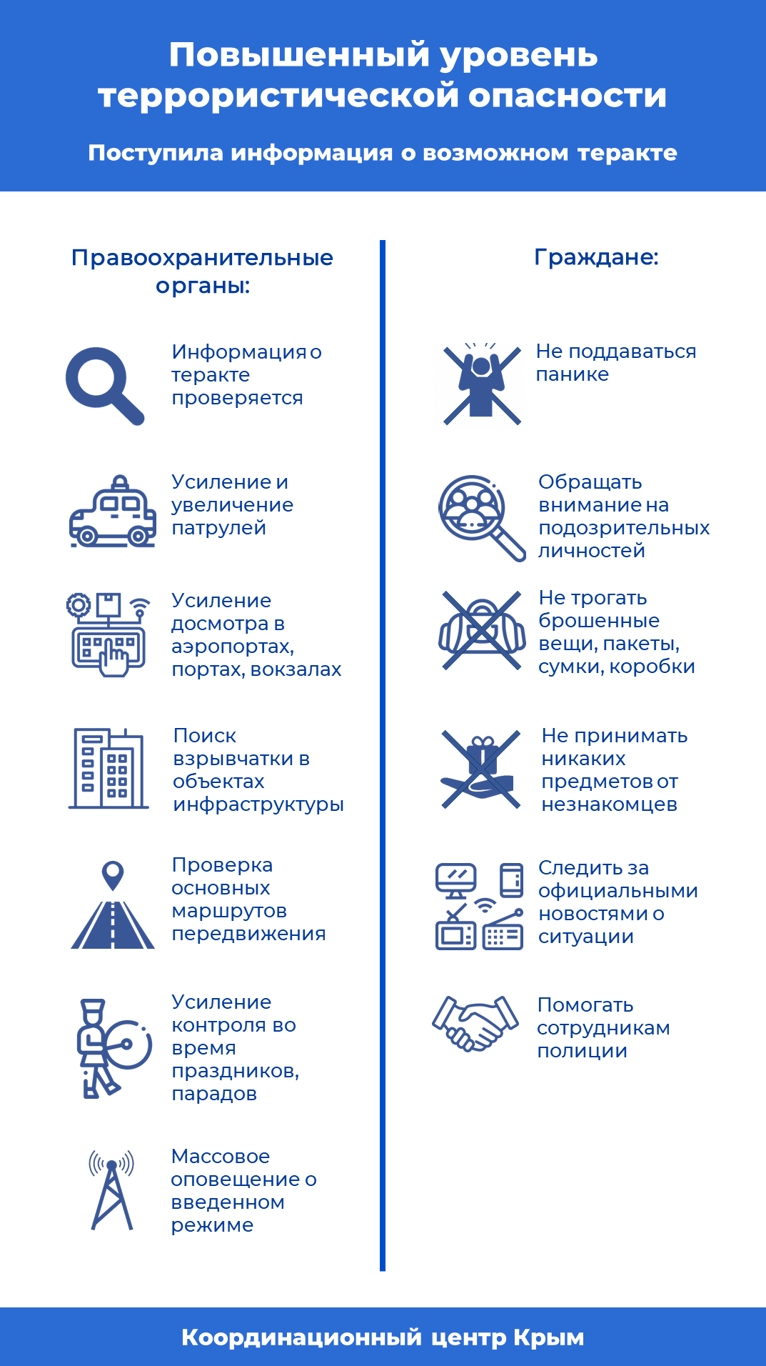 Если вам станет известно о готовящемся или совершаемом преступлении, немедленно сообщите об этом в территориальные органы ФСБ или МВД по месту жительства.